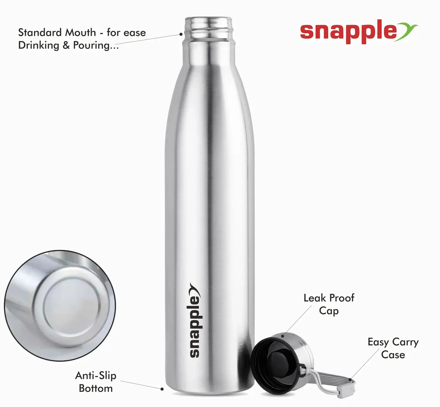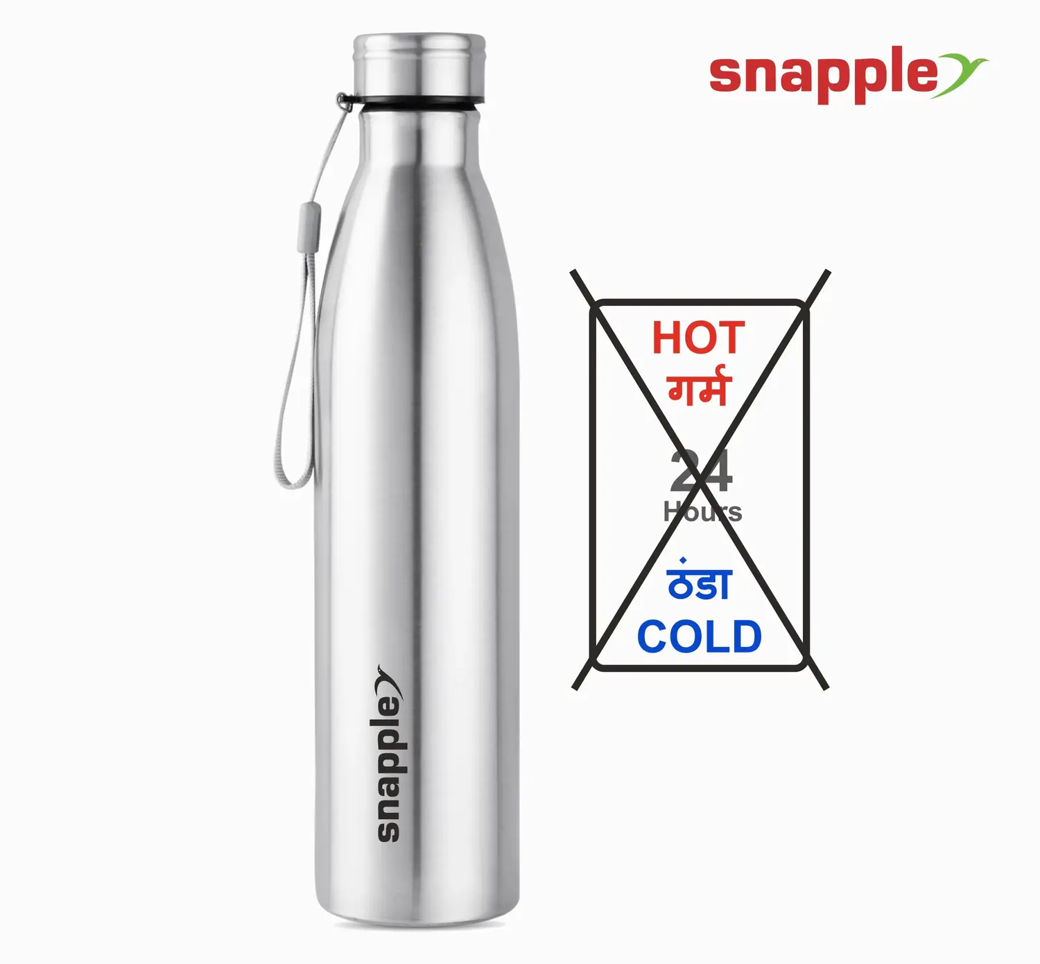 Snapple TAG Stainless Steel Water Bottle Single Wall ISI Certified 1000 ml Steel Bottle (Pack of 6, Silver)