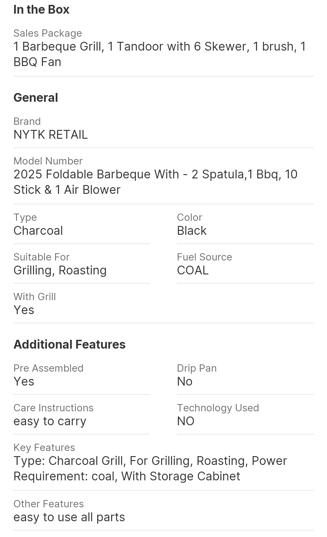 NYTK RETAIL 2025 Foldable Barbeque With - 2 Spatula,1 Bbq, 10 Stick & 1 Air Blower Charcoal Grill (Foldable)