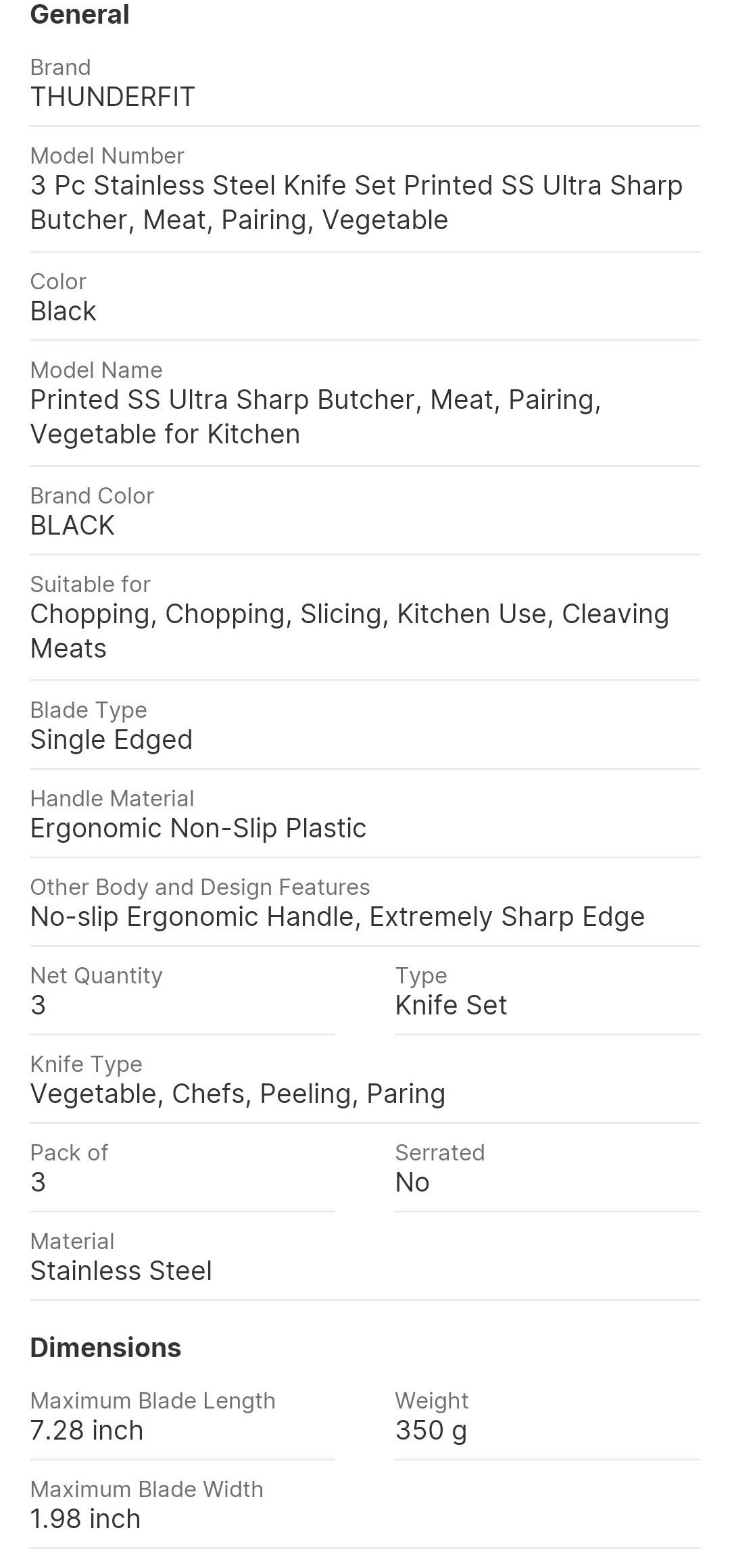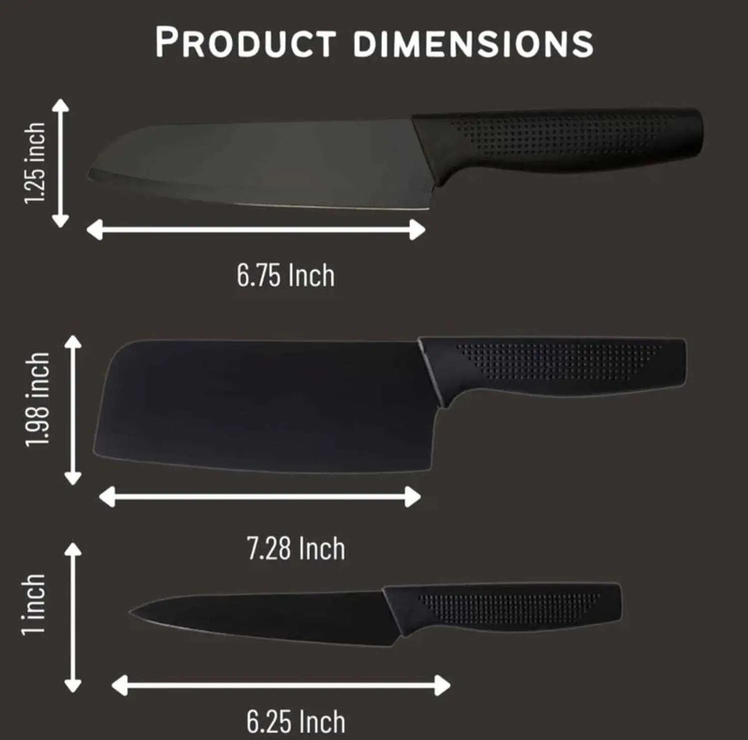 THUNDERFIT 3 Pc Stainless Steel Knife Set Printed SS Ultra Sharp Butcher, Meat, Pairing, Vegetable for Kitchen