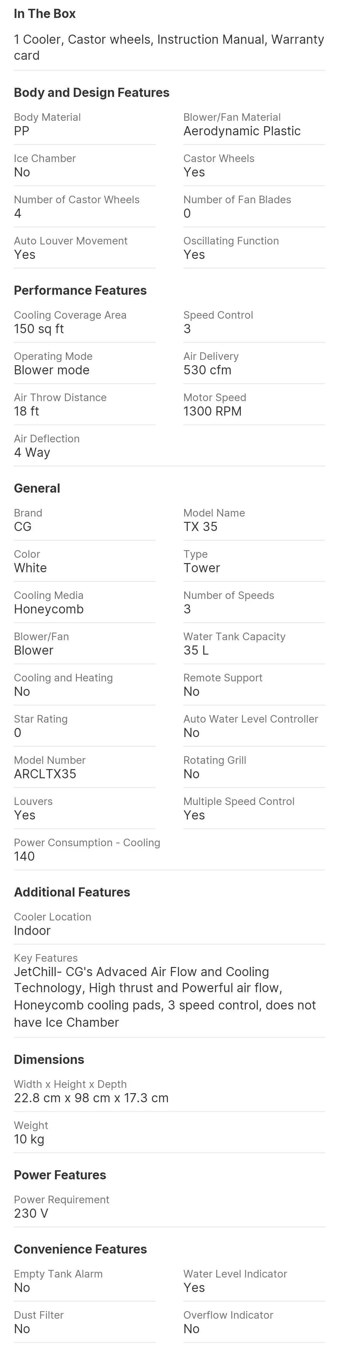 Premium 35 L Tower Air Cooler (White, TX 35)