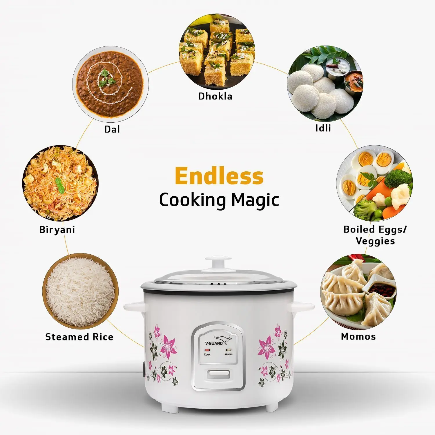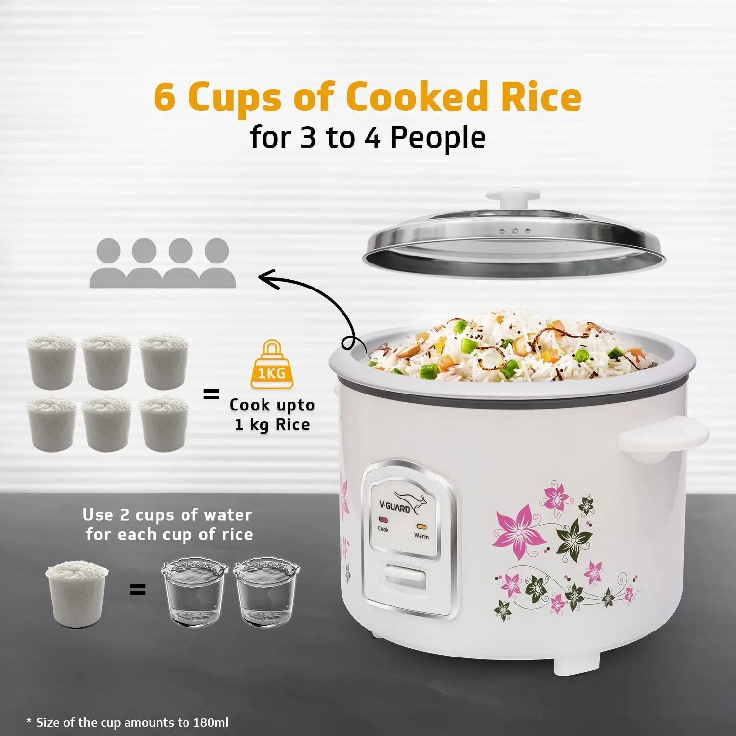 V-Guard VRC 1.8C with 2 Pots Electric Rice Cooker (1.8 L, White, Floral Pattern)